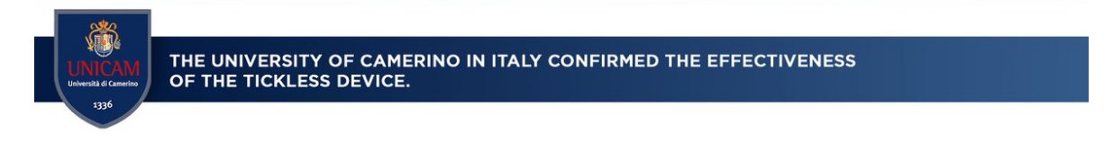 Tehnologia TICKLESS® a fost supusă unor teste riguroase și a fost dovedită eficientă printr-un studiu clinic efectuat la Laboratorul Școlii de Microbiologie Medicală Veterinară și de Boli Infecțioase de la Universitatea din Camerino, Italia